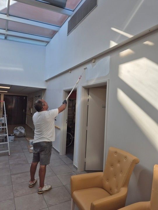 En ce mois de septembre, François, notre responsable technique s’est attelé à la réfection de la peinture d’une partie de la grande salle.